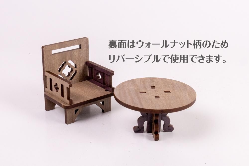 ぬいハウス(中華)に付属する家具の単品販売、テーブルとチェアのセットとなっています。
