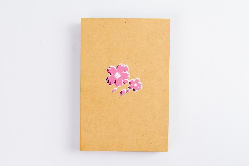 - 木製(MDF材)表紙にUVインクジェット・カラー印刷に切り抜き加工を加え1点1点を印刷・加工して仕上げます。